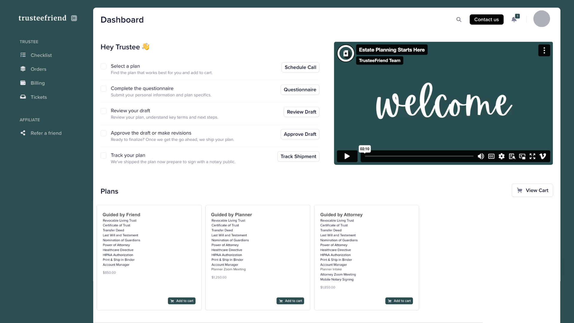 TrusteeFriend offers a quick, affordable, and simple way for clients to create their estate plans. It removes the complexity of traditional legal processes and ensures that their assets are protected. Additionally, agents can offer their clients optional expert consultations for a more personalized experience.